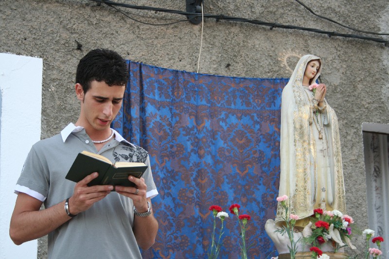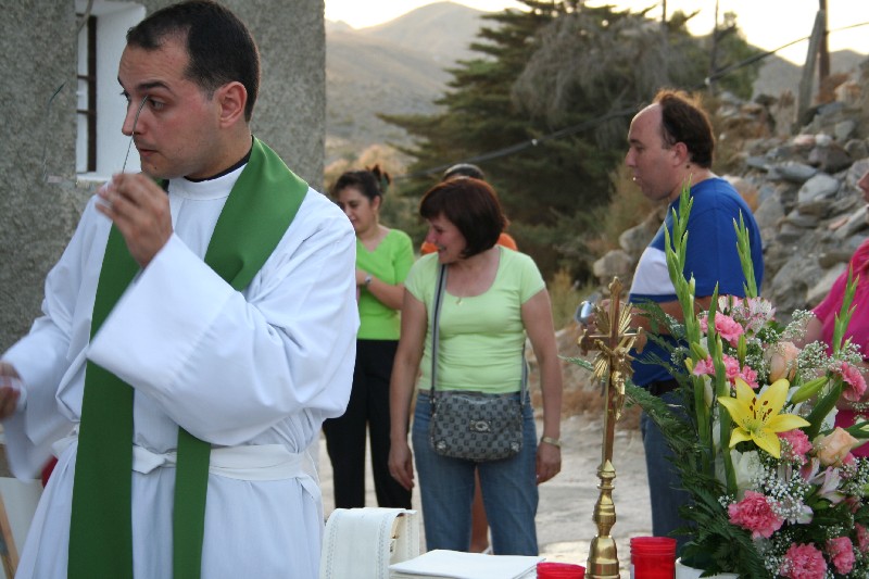 Nuevamente celebramos la misa en la Cortijada. Aunque no sigamos con la costumbre de oficiar la misa en la ermita y bajar juntos con la virgen de Fátima, logramos presenciar una misa con un mayor número de asistentes que conservaron un respeto y un silencio solemnes.