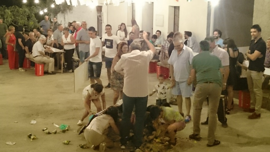 Finalizado el solemne acto, la gente se dirigió a las mesas para ser servidos en una Cortijada ya repleta a primerísima hora de la noche. Varios voluntarios se ofrecieron a que ninguna mesa careciera de comida o bebida. Hay que decir que el tradicional y delicioso ponche cumplió sobradamente con las expectativas, muchos podemos dar fe.