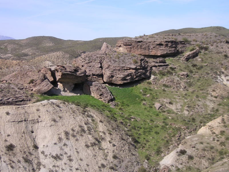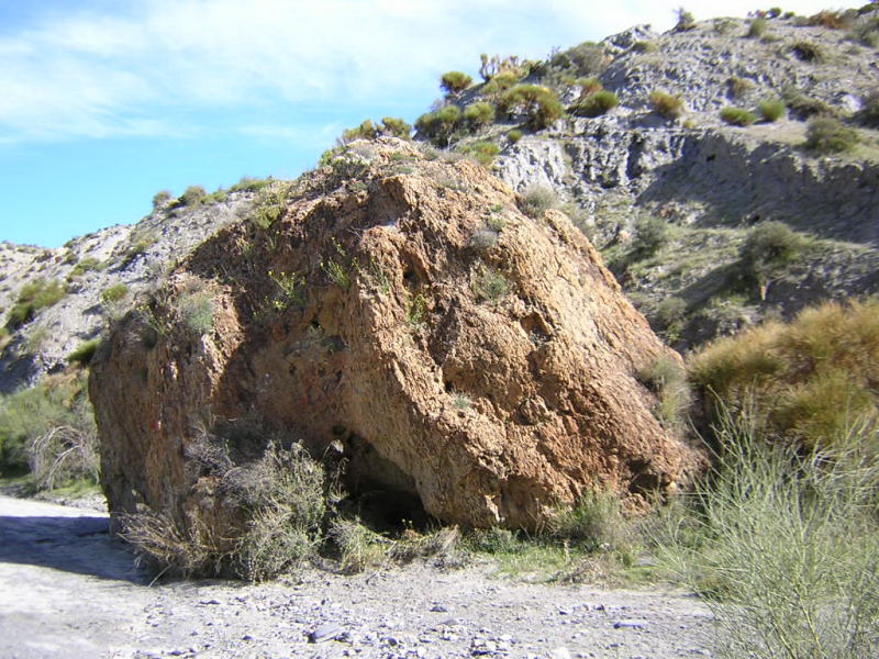 Siguiendo por esta última rambla alcanzamos otra curiosa formación rocosa, se trata del Peñón de la Viruela.