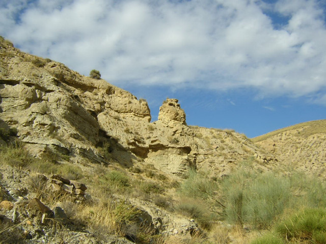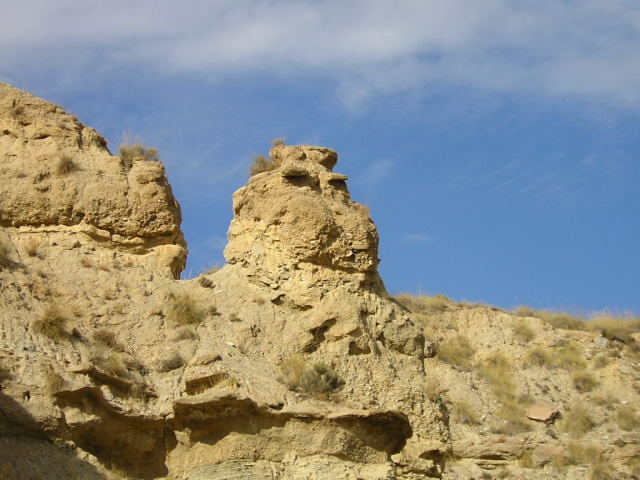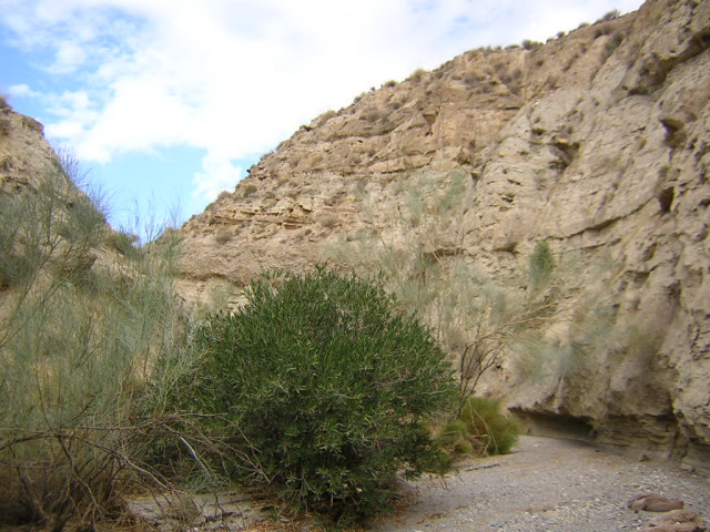 Si Descendemos por la rambla de Gérgal hacia el Cortijo del Estanco, a la altura del mismo y por el margen izquierdo de la rambla se entra en el barranco del Hurón. Recorriendo ese barranco se pueden contemplar algunas vistas que quizás sorprendan a los que nunca han estado allí.