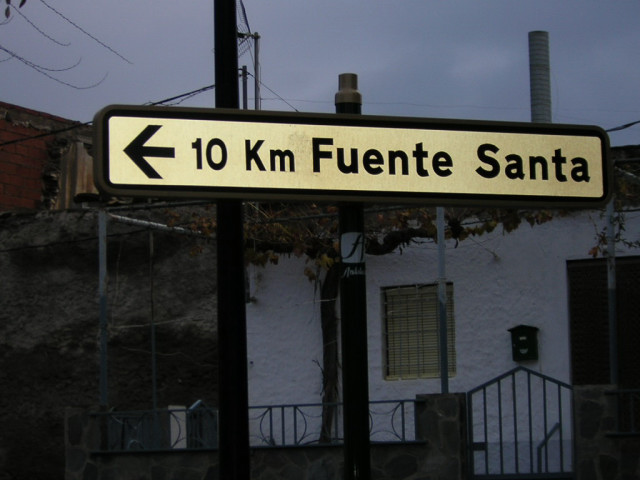 Punto 2 (kilómetro 3,480): Se llega a la plaza de Las Alcubillas. Hay que seguir el cartel que nos indica Fuente Santa 10 Km. En realidad, la distancia indicada es incorrecta, ya que la distancia a Fuente Santa es, aproximadamente, 7 Kilómetros.